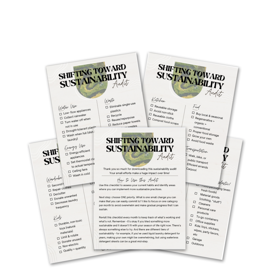Download this audit to evaluate your daily home + personal consumption habits and identify areas to make great progress toward sustainability.